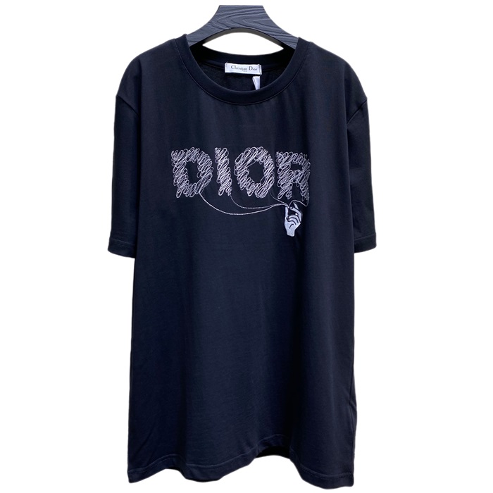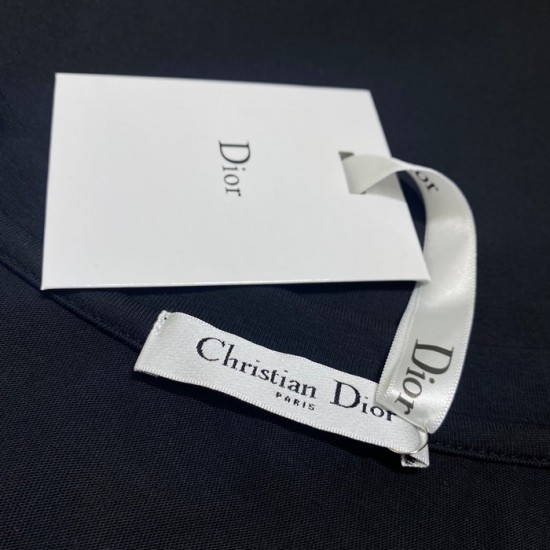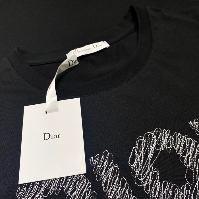 -ディオールユニセックスカジュアルクルーネック半袖Tシャツo01203ブラック