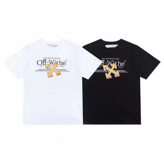 オフホワイトオフホワイトユニセックスプリントコットン半袖Tシャツf0701ブラック