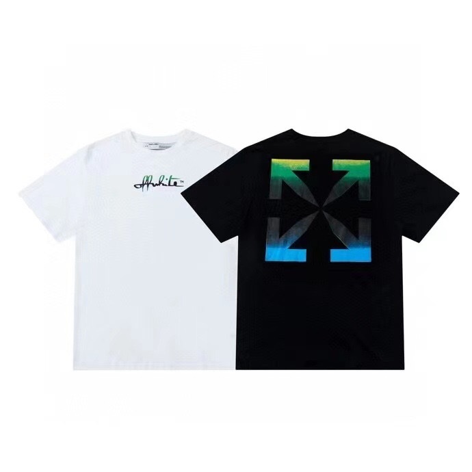 オフホワイトオフホワイトユニセックスプリントコットン半袖Tシャツf0705ブラック