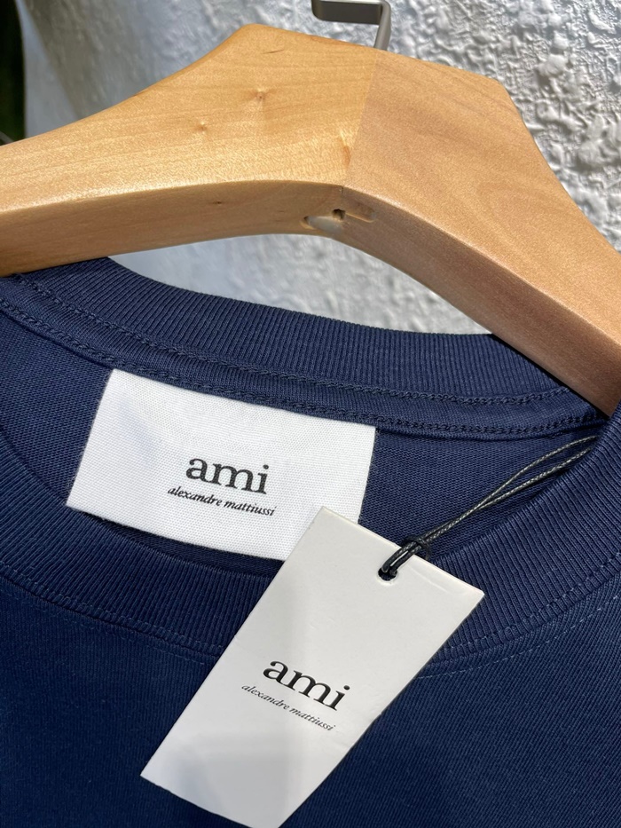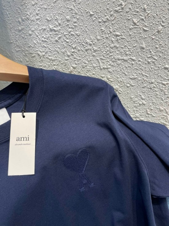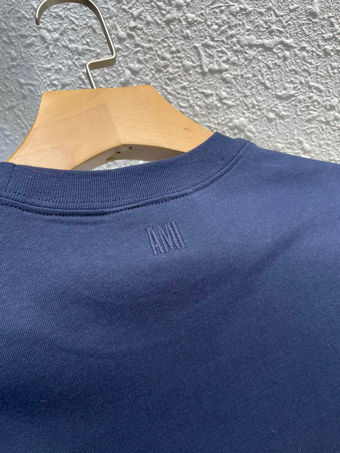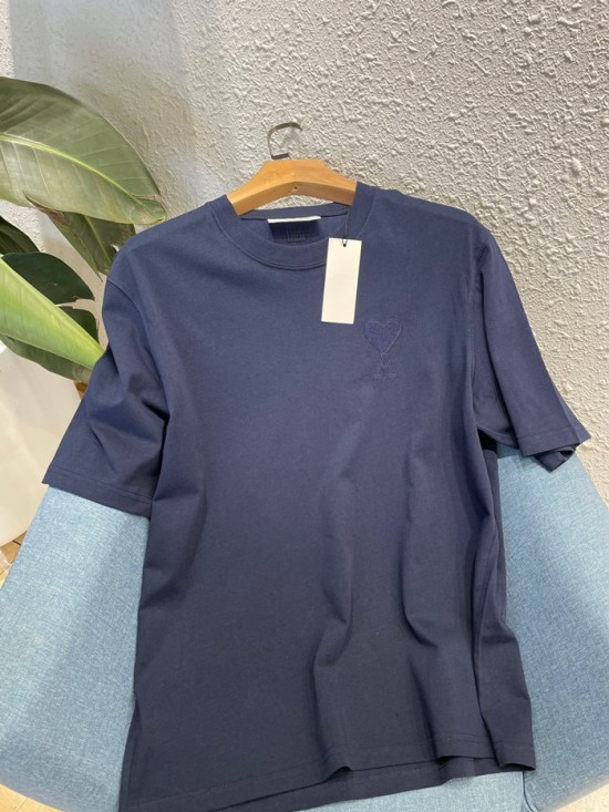 アミユニセックスコットンカジュアル半袖Tシャツ0104ネイビー