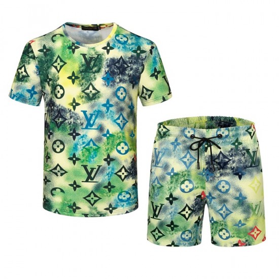 ルイヴィトンメンズカジュアル半袖トレーニングふく&ショートパンツu02778グリーン