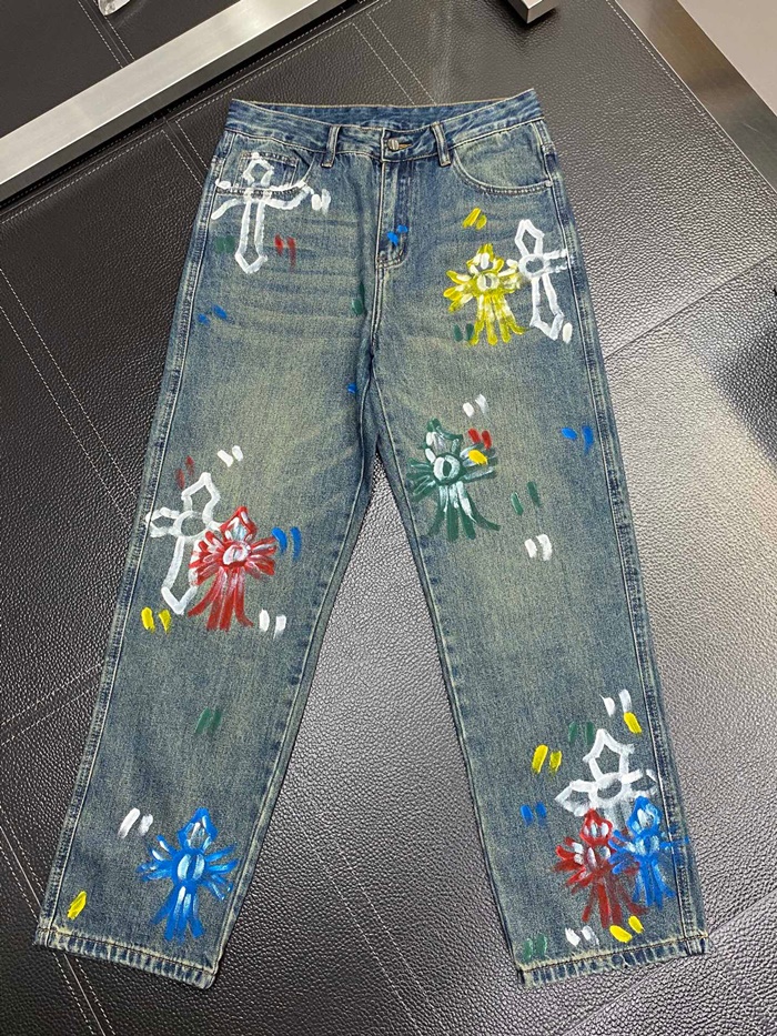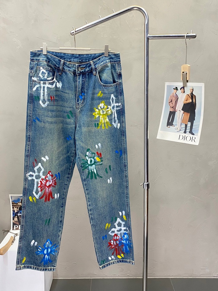 クロムハーツメンズカジュアルデニムジーンズr0340ブルー