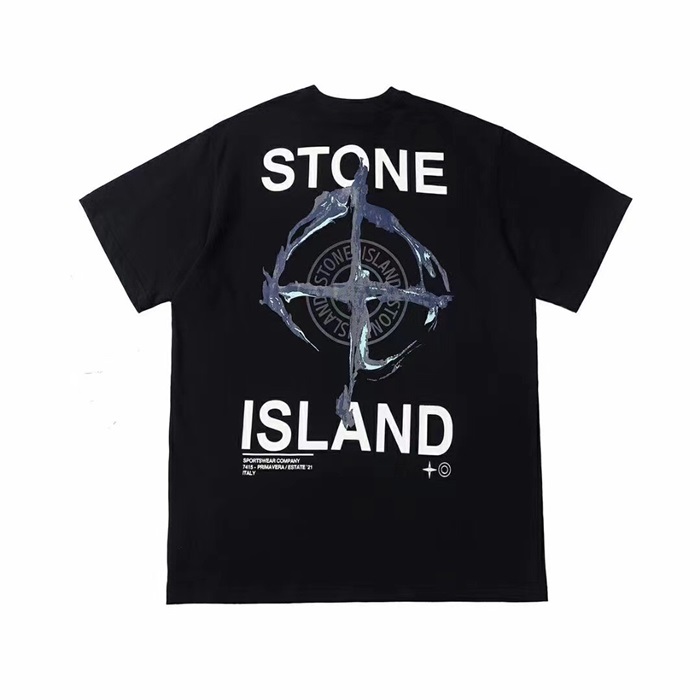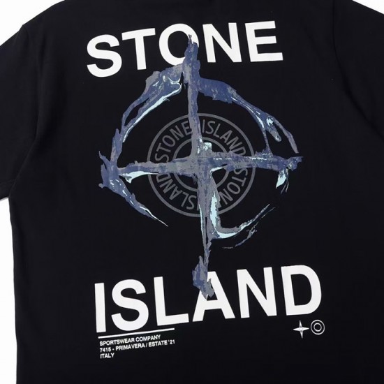 -ストーンアイランドメンズクルーネックコットン半袖Tシャツo0310ブラック