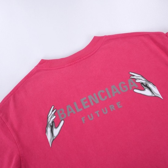 バレンシアガユニセックスコットン半袖Tシャツl01013ピンク