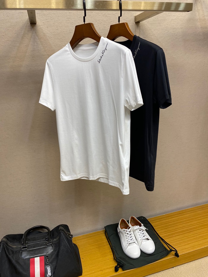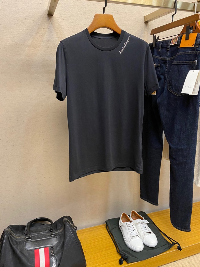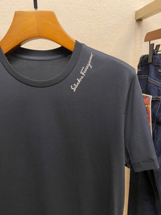 サルヴァトーレフェラガモメンズベーシックコットン半袖Tシャツr0328ブラック