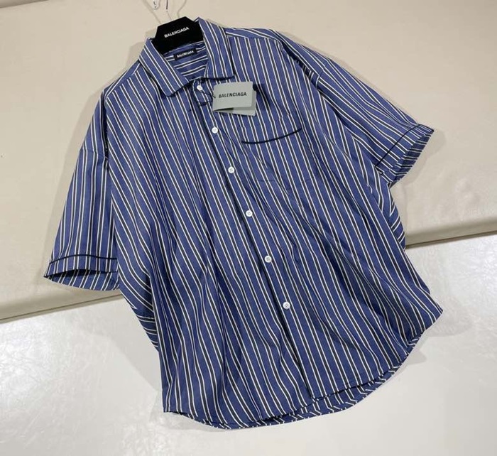 バレンシアガユニセックスコットン半袖Tシャツl01022ブルー