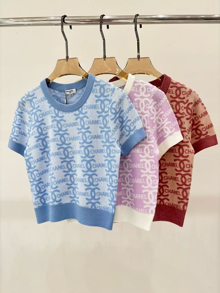 シャネルユニセックスコットン半袖Tシャツl0680ピンク