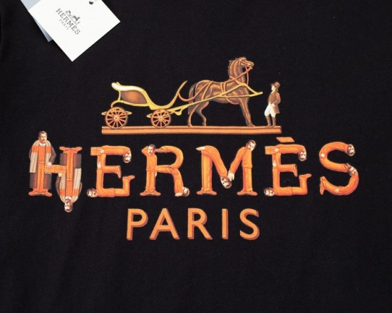 -エルメスメンズクルーネック半袖Tシャツr0640ブラック