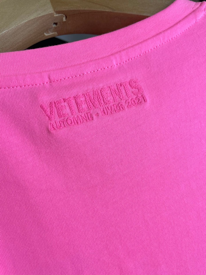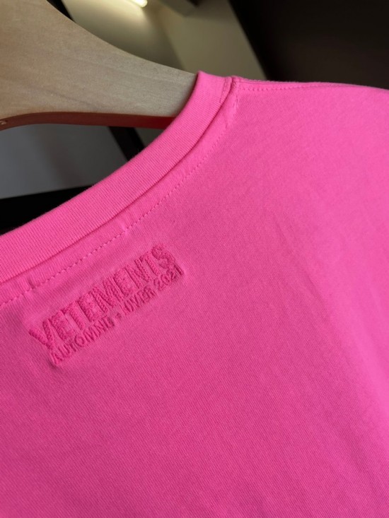 ヴェトモンユニセックスミニマルコットン半袖Tシャツt0133ピンク