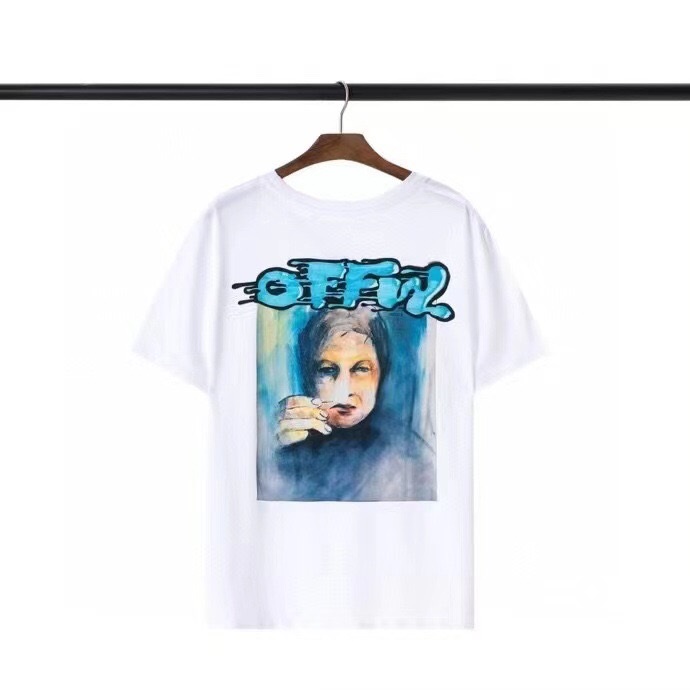 オフホワイトユニセックスプリントコットン半袖Tシャツf0731ホワイト