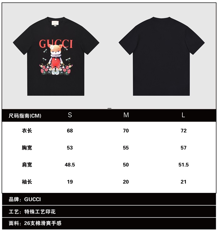 グッチユニセックス半袖Tシャツc03699ブラック