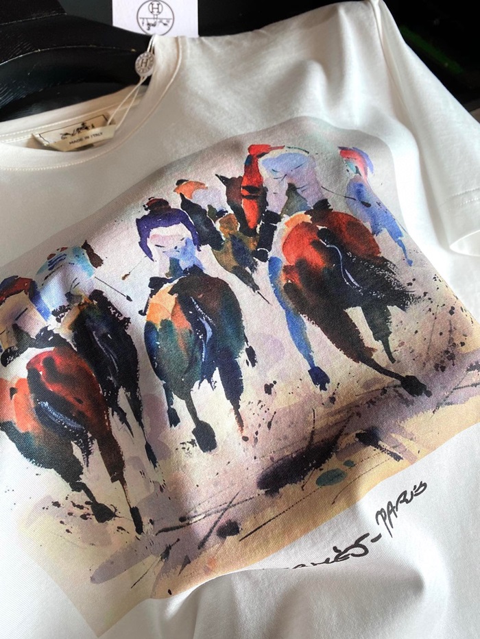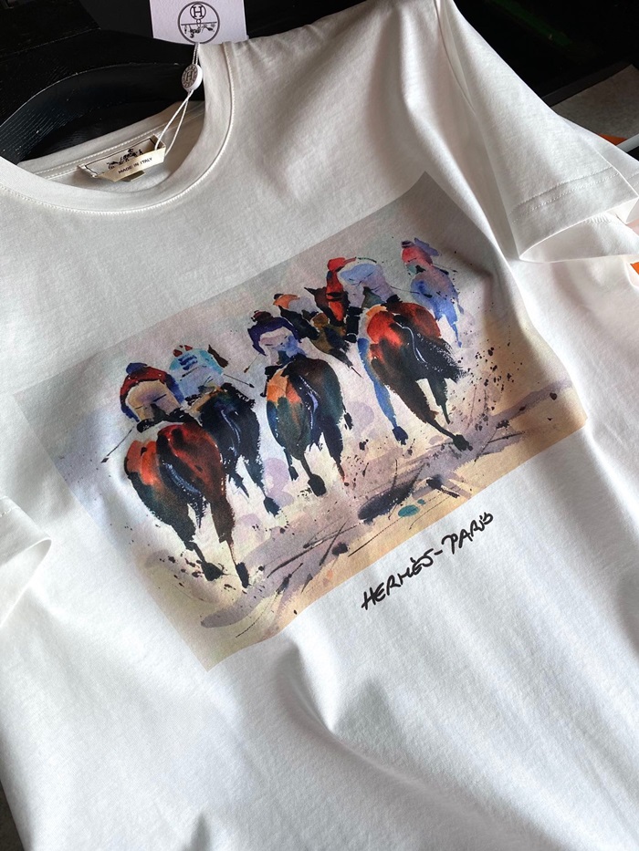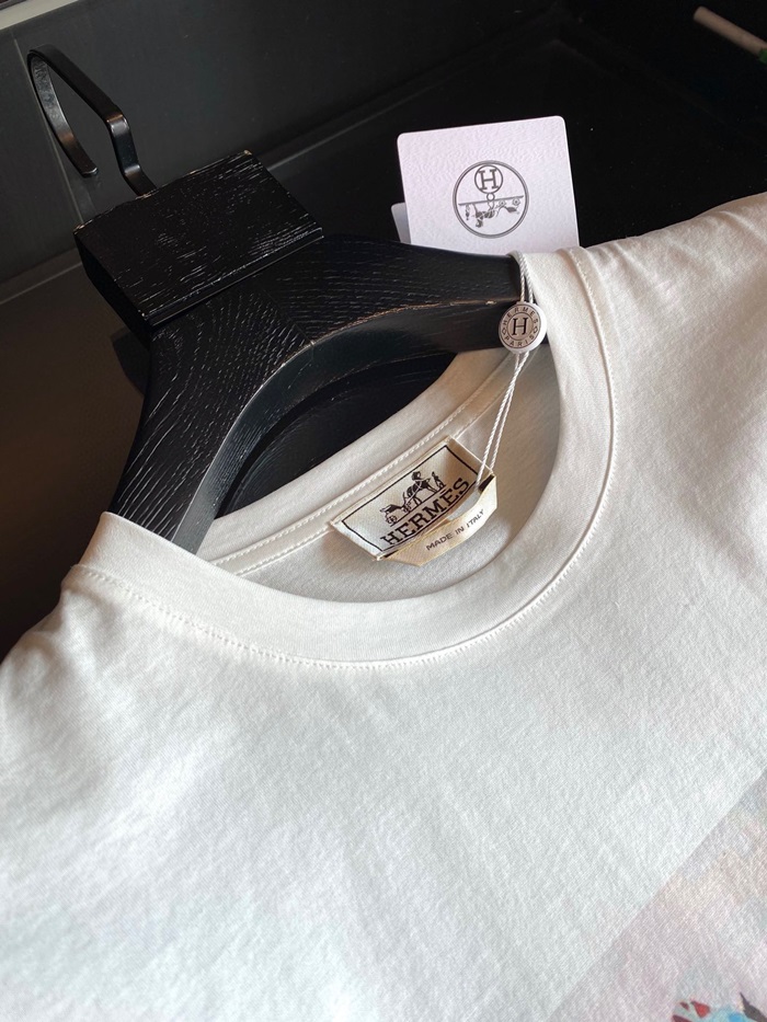 -エルメスメンズクルーネック半袖Tシャツr0648ホワイト