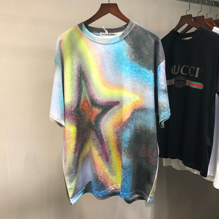 アクネストゥディオズユニセックスコットン半袖Tシャツn0125ブルー