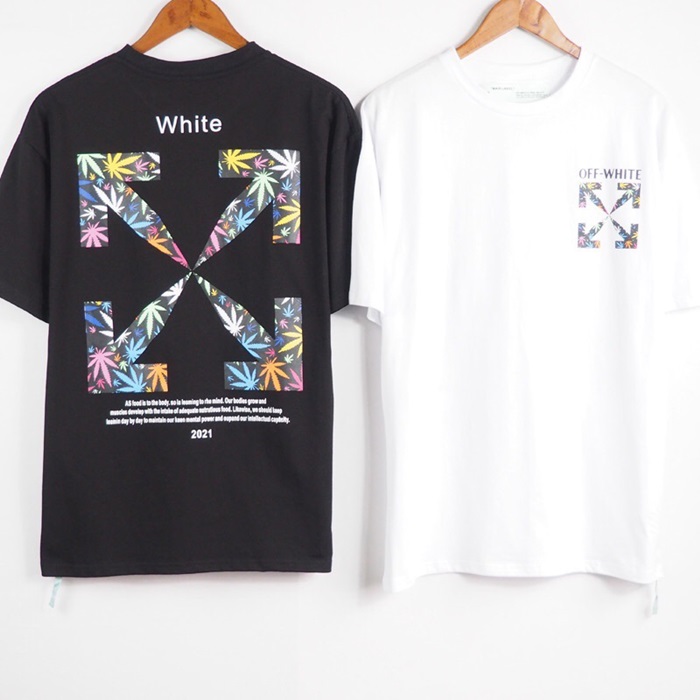 カジュアルオフホワイトユニセックスプリントコットン半袖Tシャツf0734ホワイト