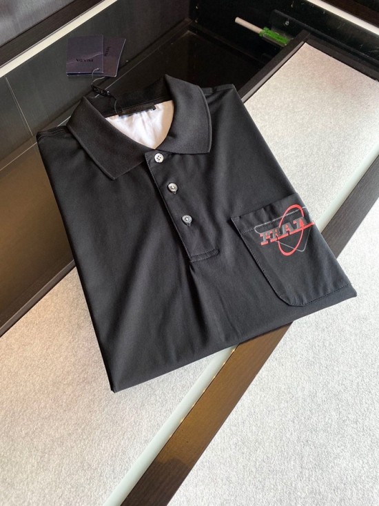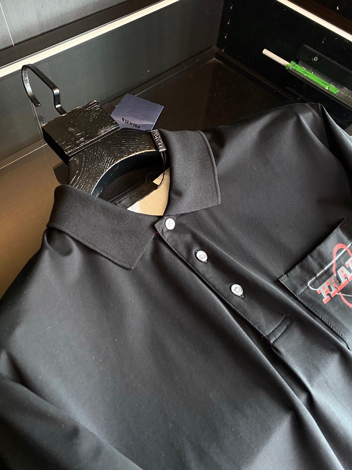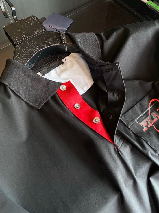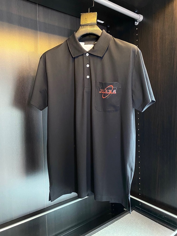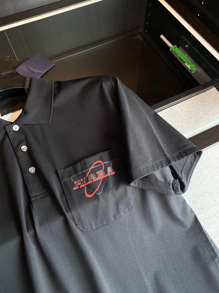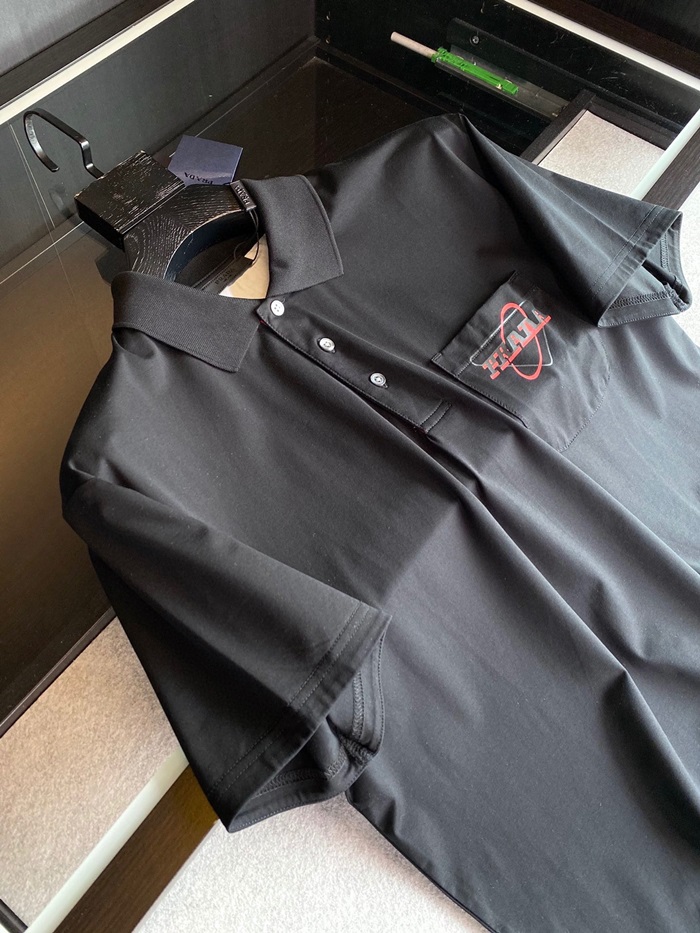 プラダメンズベーシックポロ半袖Tシャツa02258ブラック