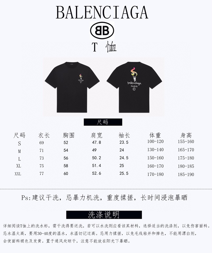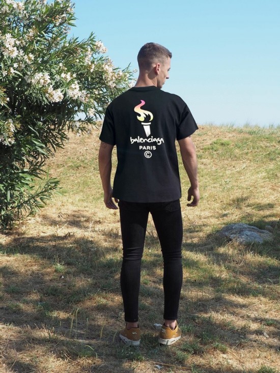 バレンシアガユニセックスコットン半袖Tシャツl01046ブラック