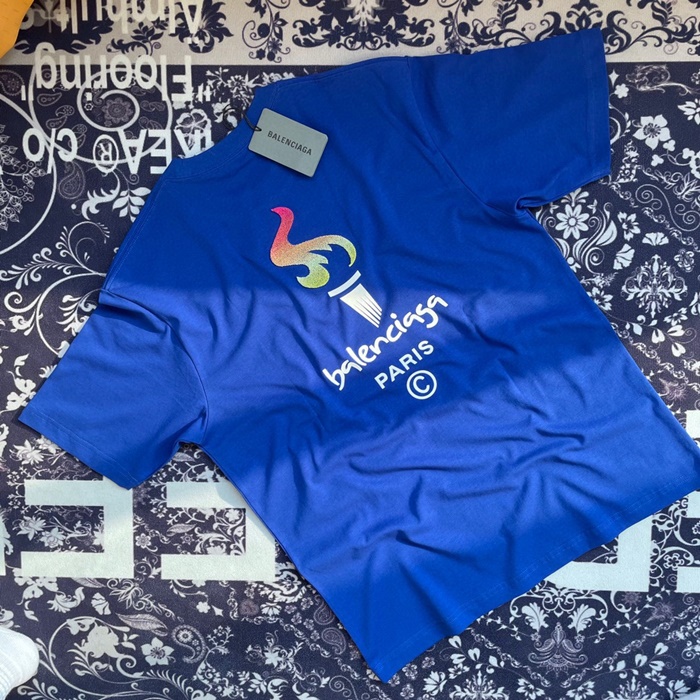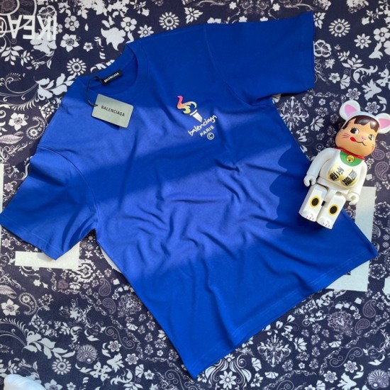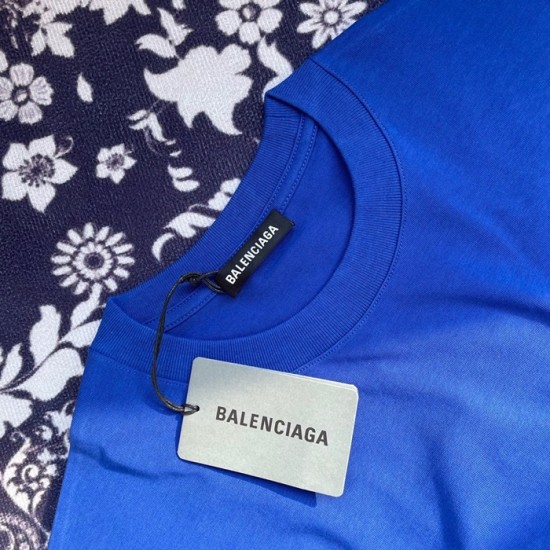 バレンシアガユニセックスコットン半袖Tシャツl01048ブルー