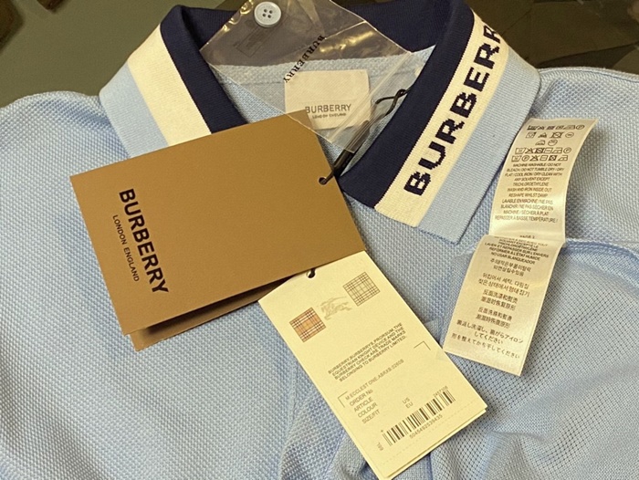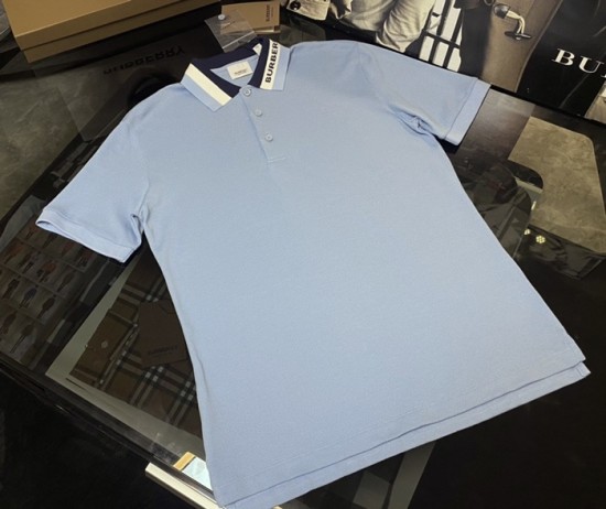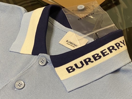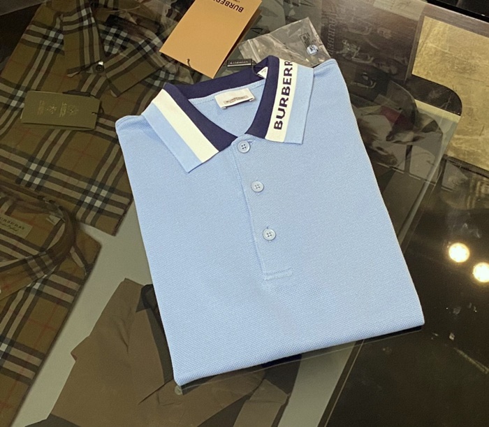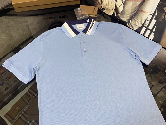 バーバリーメンズコットンポロ半袖Tシャツr03871ブルー