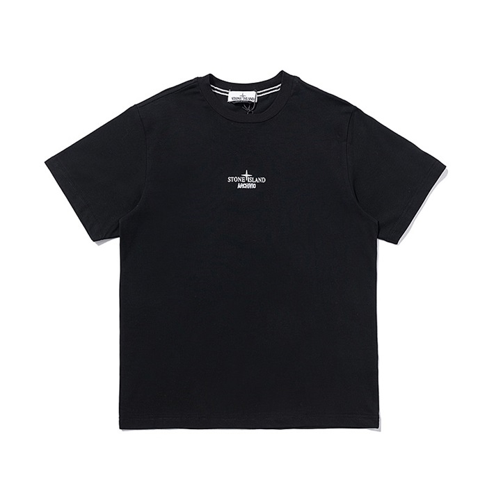 -ストーンアイランドメンズクルーネックコットン半袖Tシャツo0334ブラック