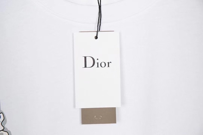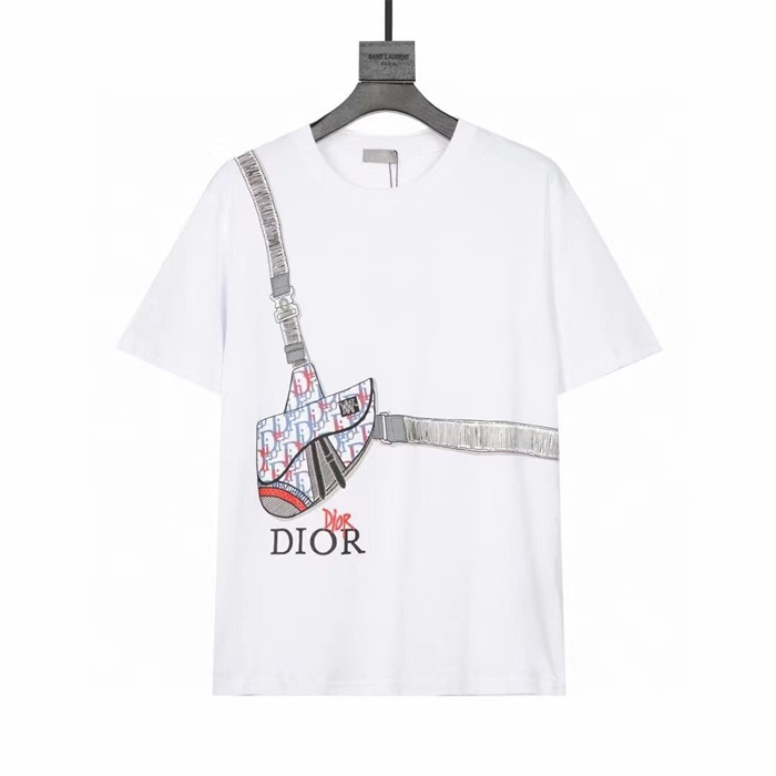 -ディオールユニセックスカジュアルクルーネック半袖Tシャツo01243ホワイト