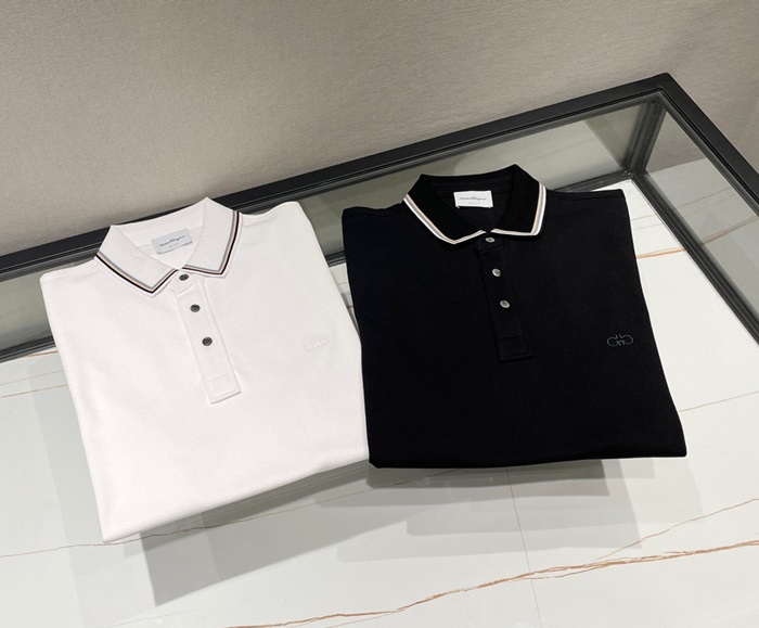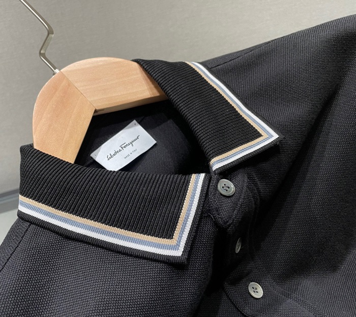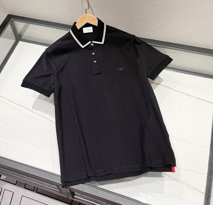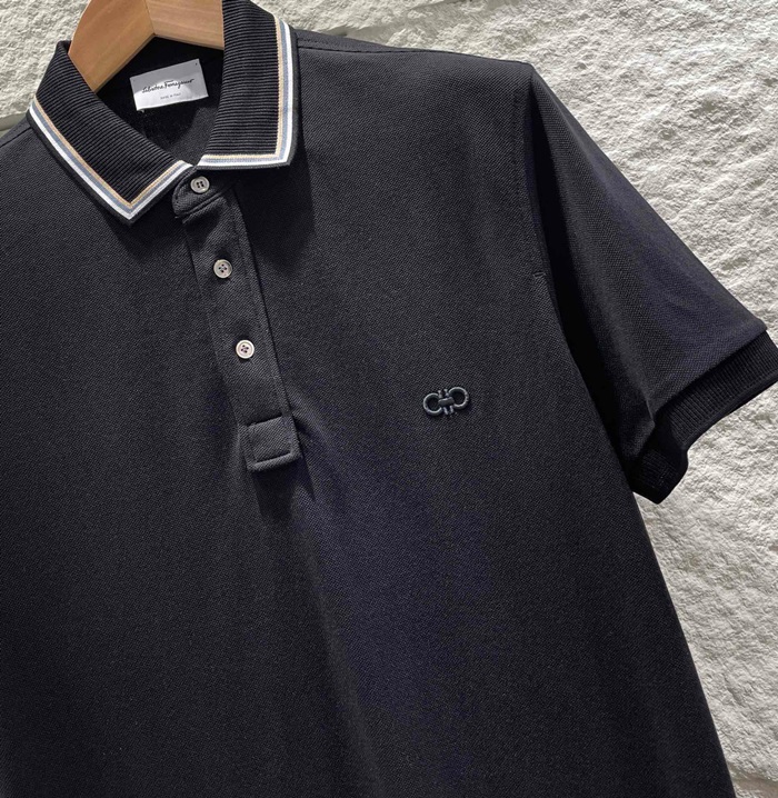 サルヴァトーレフェラガモメンズベーシックコットン半袖Tシャツr0325ブラック