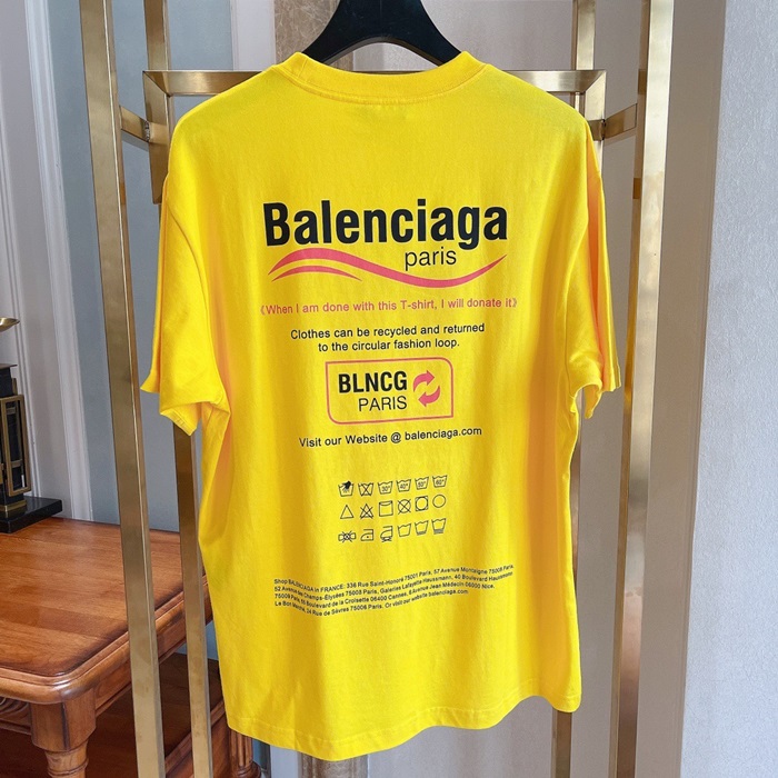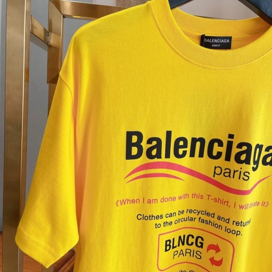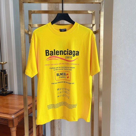 バレンシアガユニセックスコットン半袖Tシャツl01062イエロー
