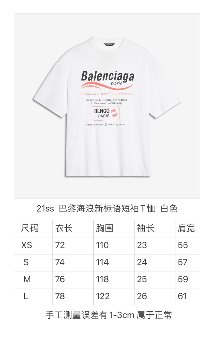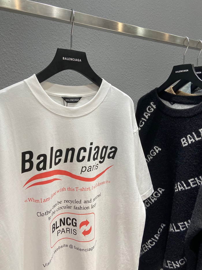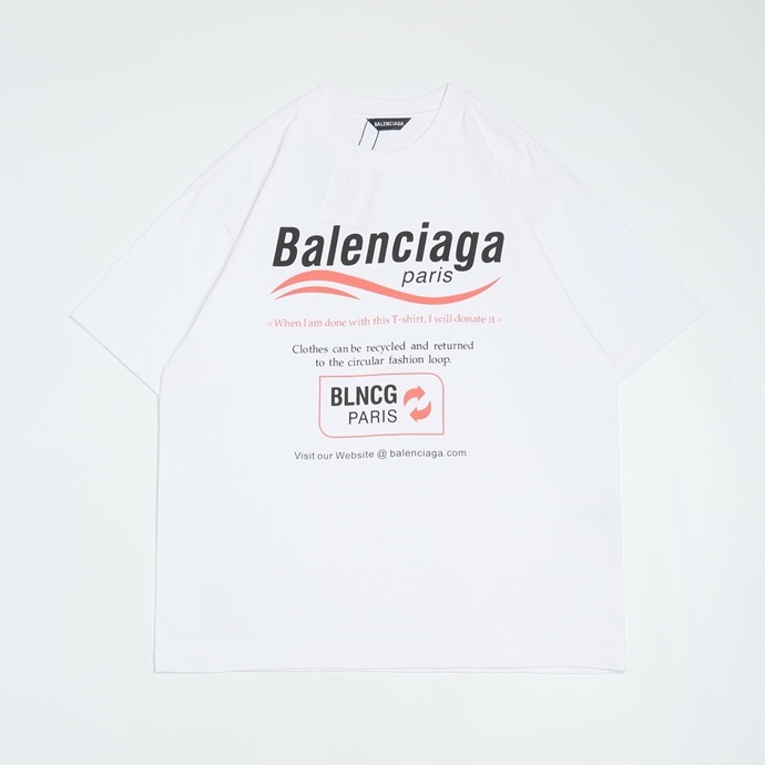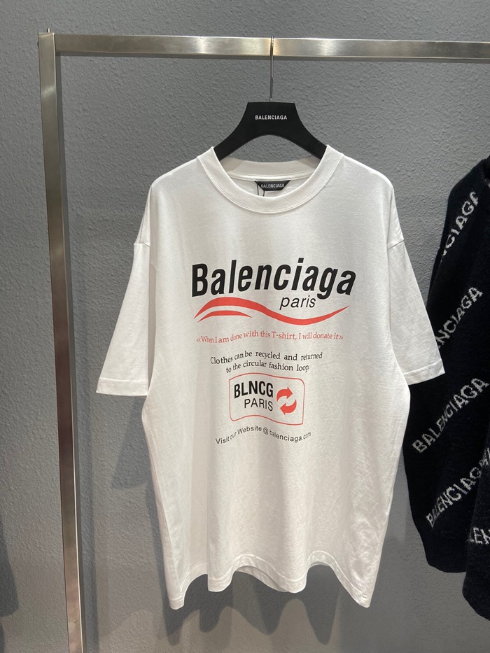 バレンシアガユニセックスコットン半袖Tシャツl01062ホワイト