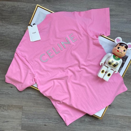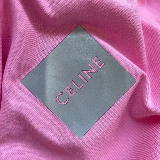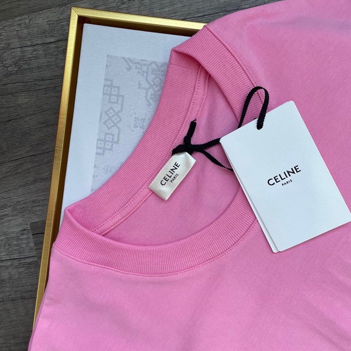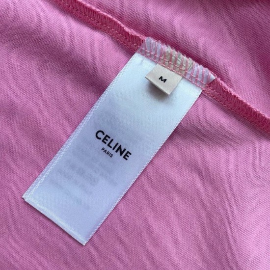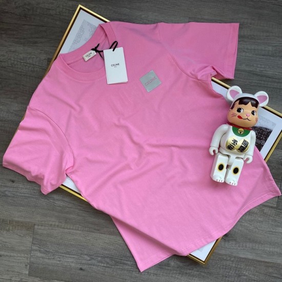 セリーヌユニセックスコットン半袖Tシャツl0120ピンク