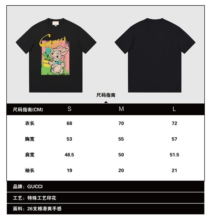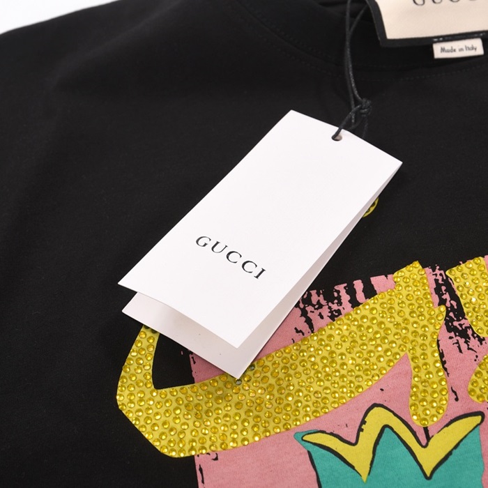 グッチユニセックス半袖Tシャツc03761ブラック