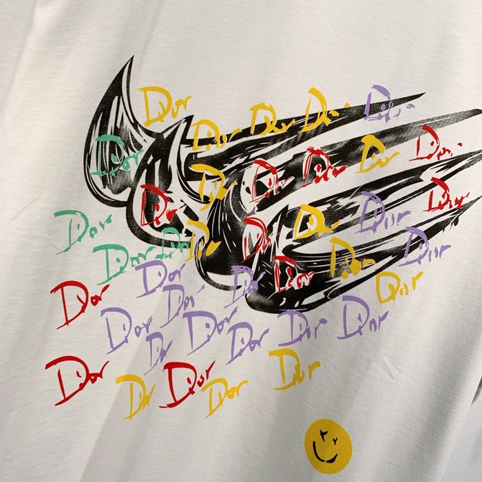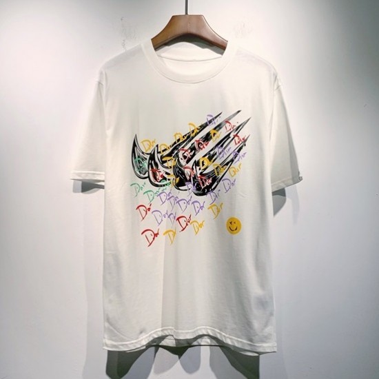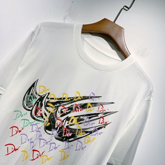 -ディオールユニセックスカジュアルクルーネック半袖Tシャツo01251ホワイト