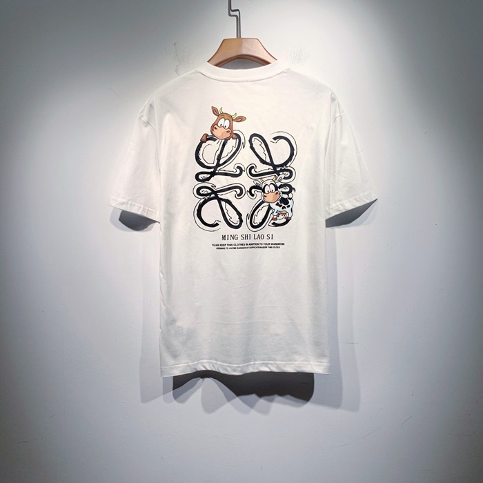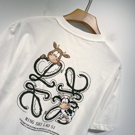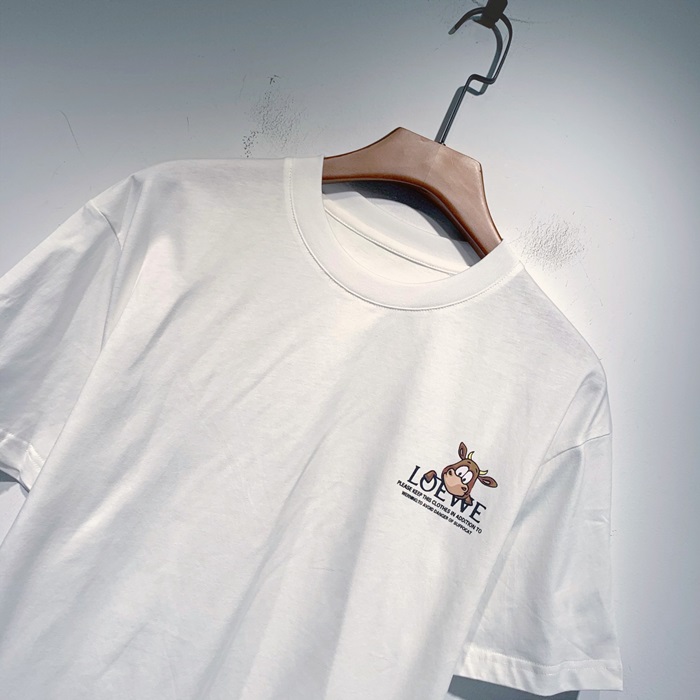 ロエベユニセックススマイル半袖Tシャツe0428ホワイト