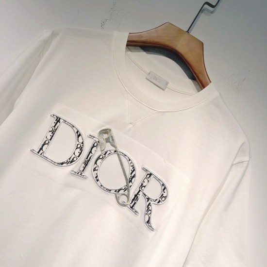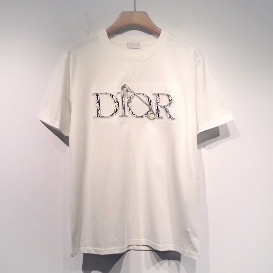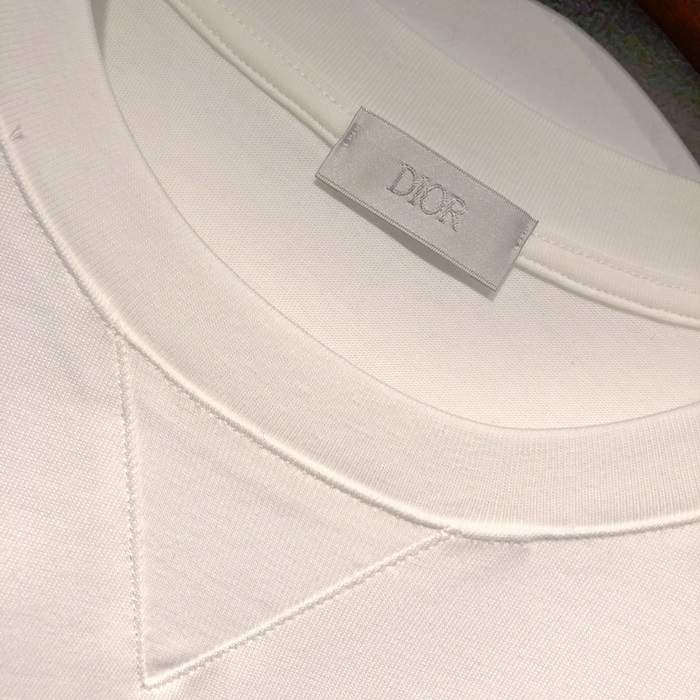 -ディオールユニセックスカジュアルクルーネック半袖Tシャツo01264ホワイト