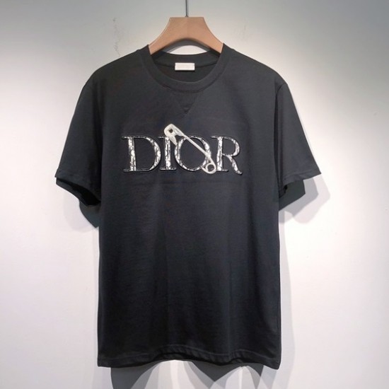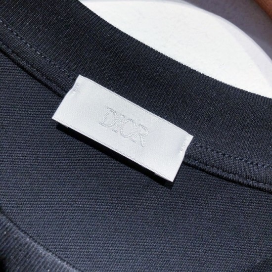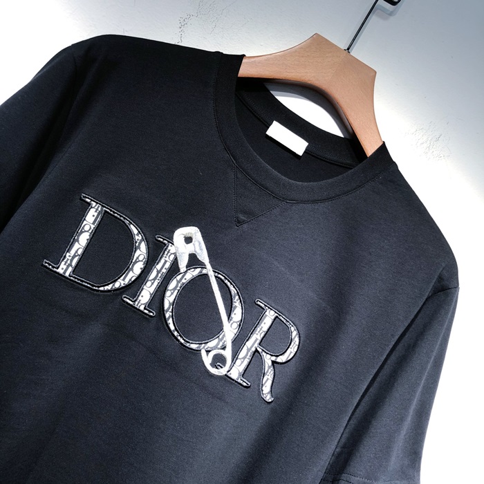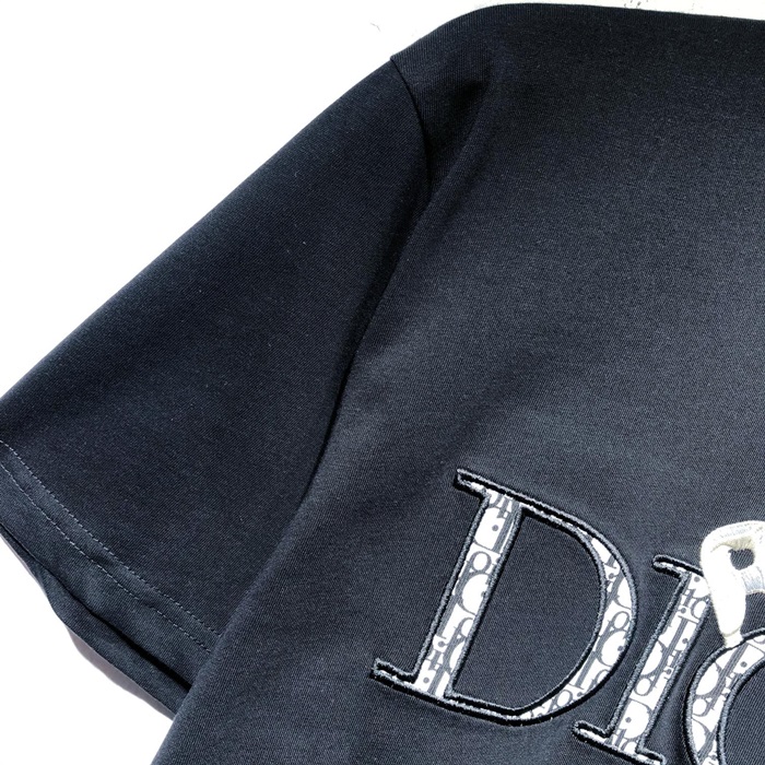 -ディオールユニセックスカジュアルクルーネック半袖Tシャツo01265ブラック