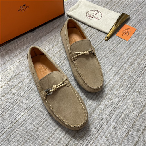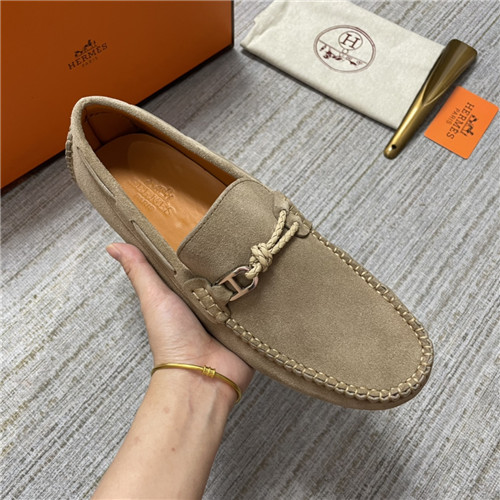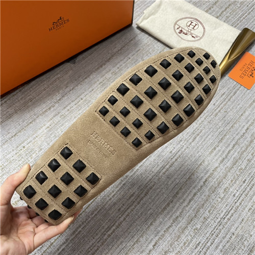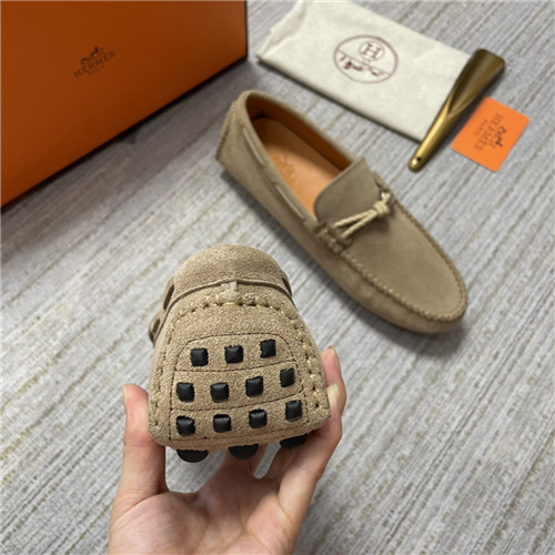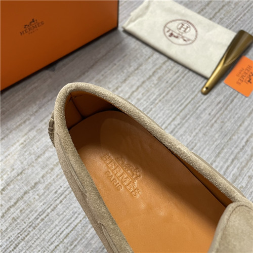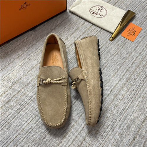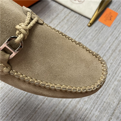 ,S0473エルメスメンズレザーローファー,カーキ