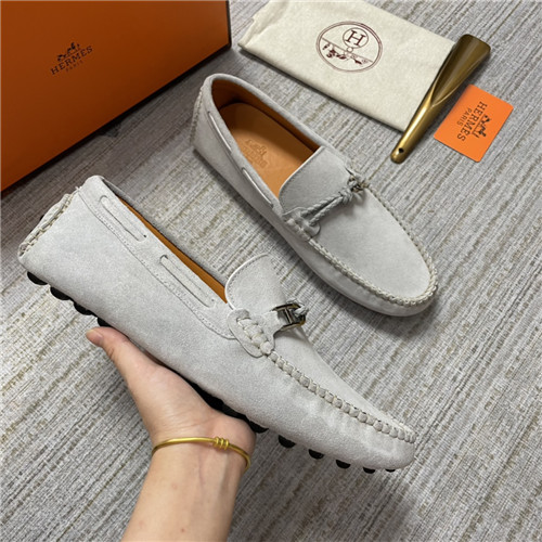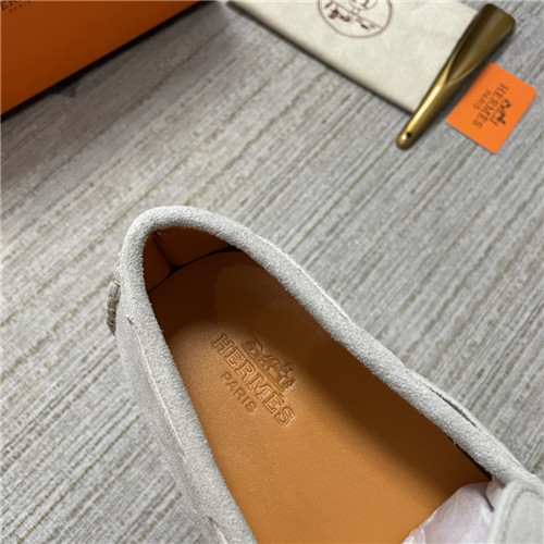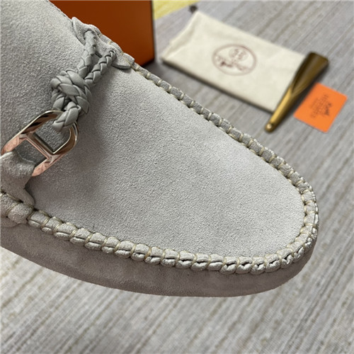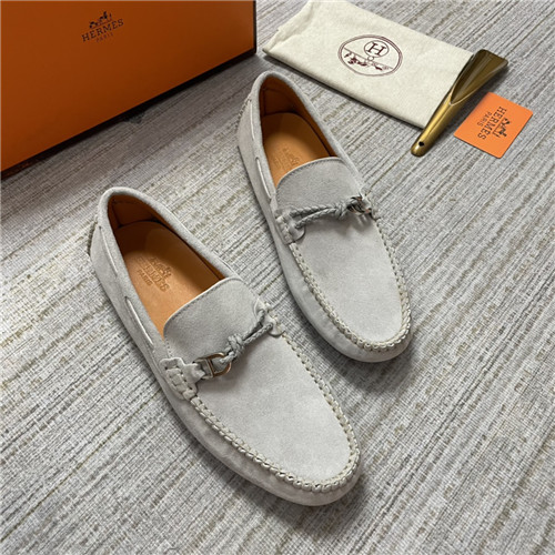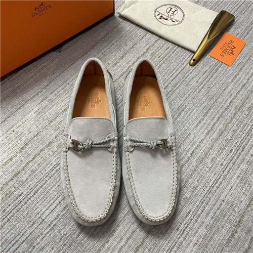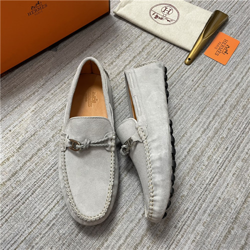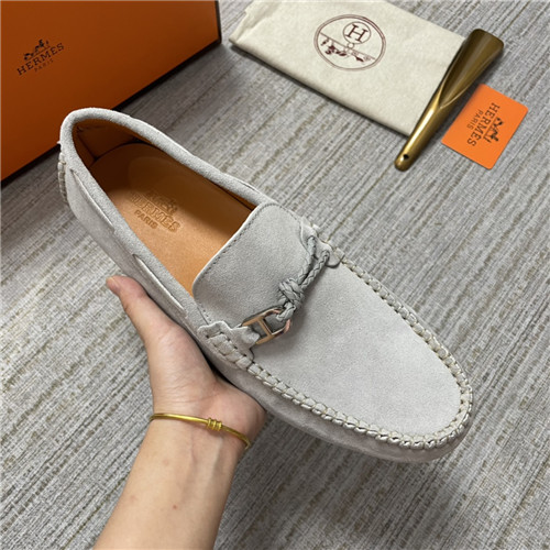 ,S0474エルメスメンズレザーローファー,グレー
