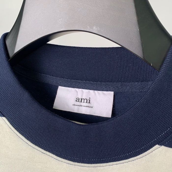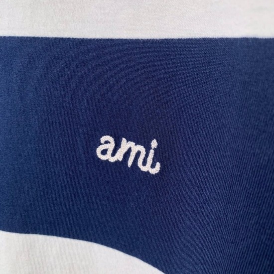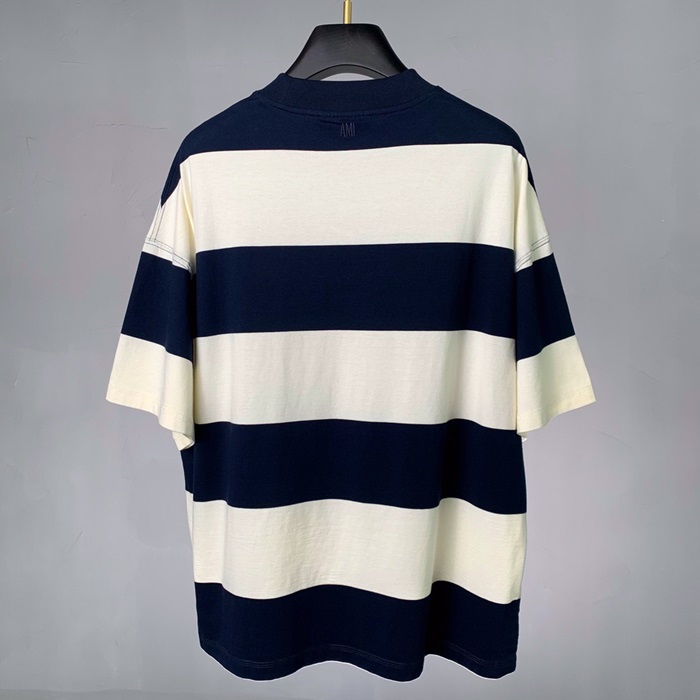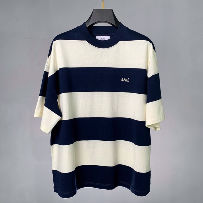 アミユニセックスコットンカジュアル半袖Tシャツ0138ネイビー