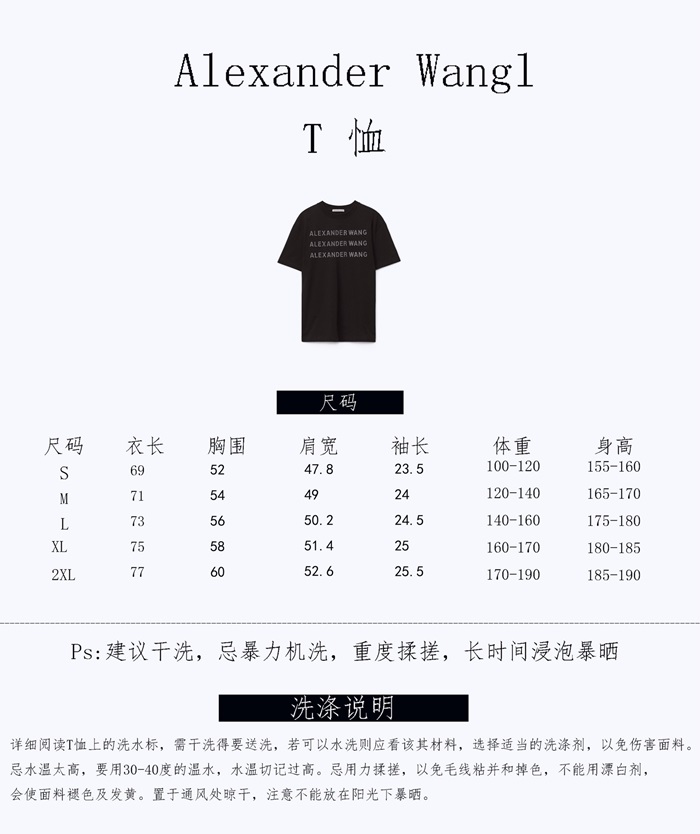 アレクサンダーワンユニセックス半袖Tシャツw0176ホワイト