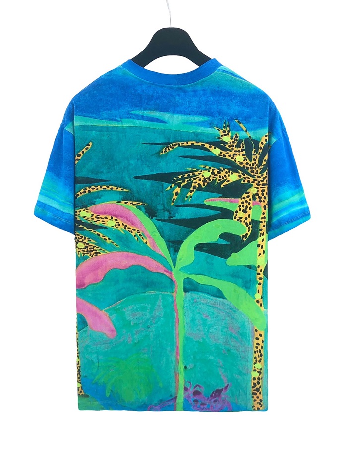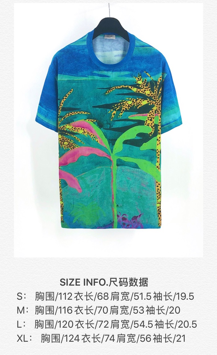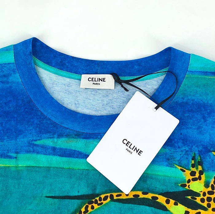 セリーヌユニセックスコットン半袖Tシャツl0123ブルー