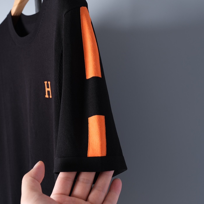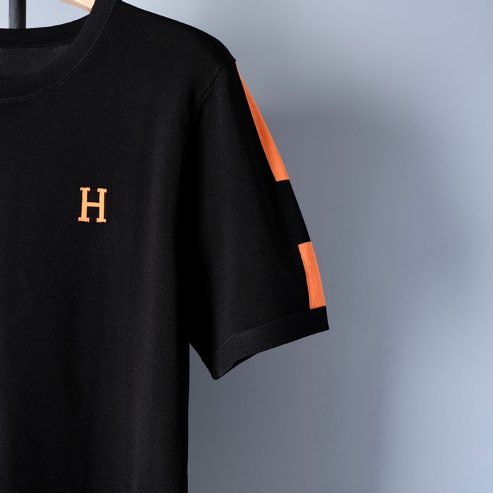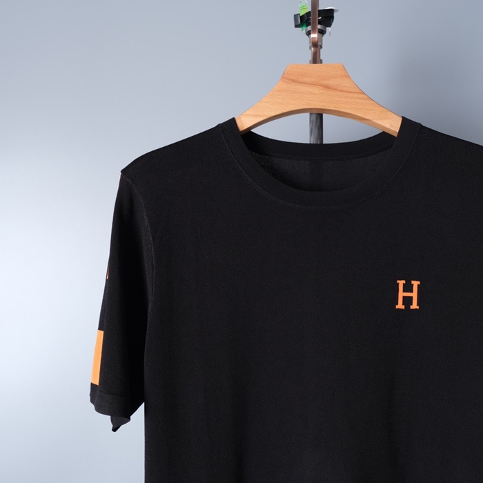 -エルメスメンズクルーネック半袖Tシャツr0664ブラック