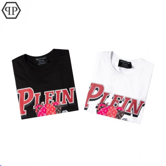 フィリッププレインメンズコットン半袖Tシャツi0145ブラック