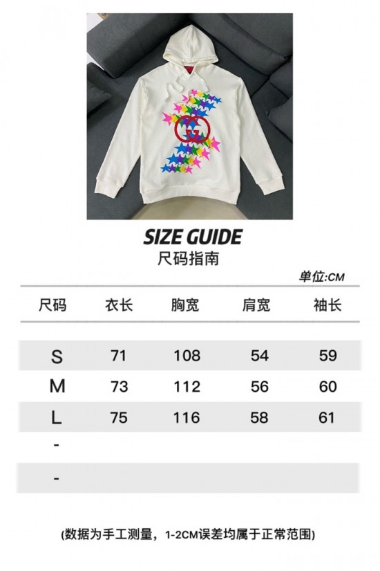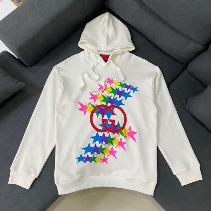 グッチユニセックスカジュアルオーバーサイズコットンフーディc03831アイボリー