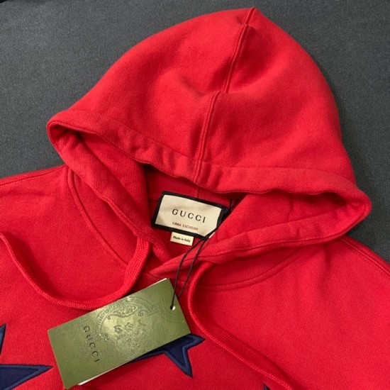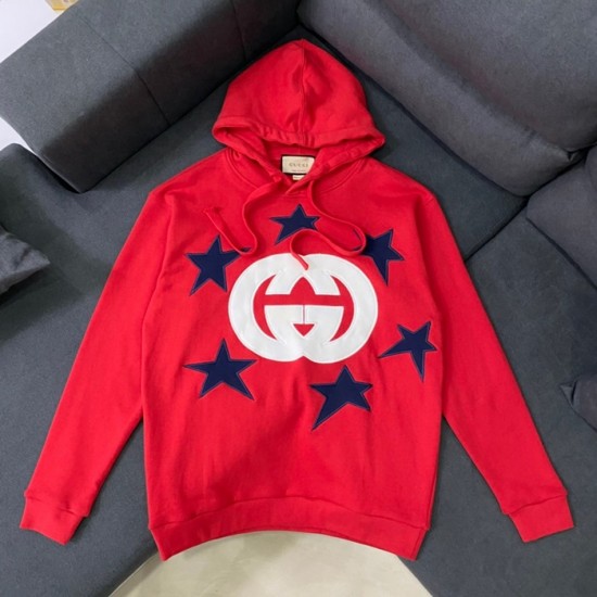 グッチユニセックスカジュアルオーバーサイズコットンフーディc03832レッド