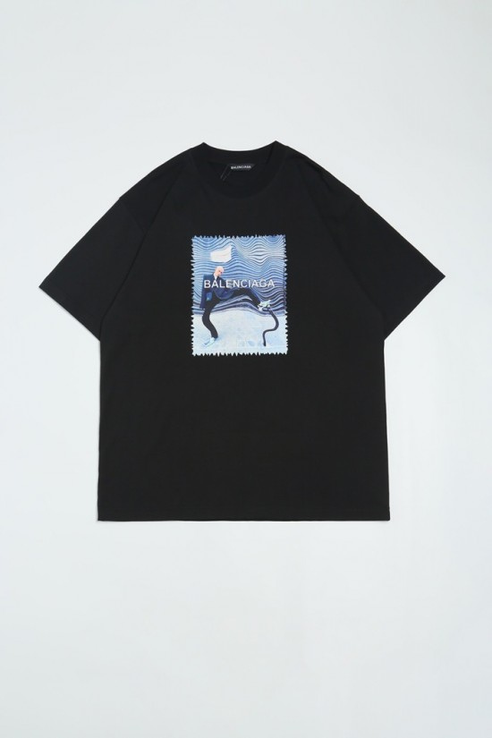バレンシアガユニセックスコットン半袖Tシャツl01109ブラック
