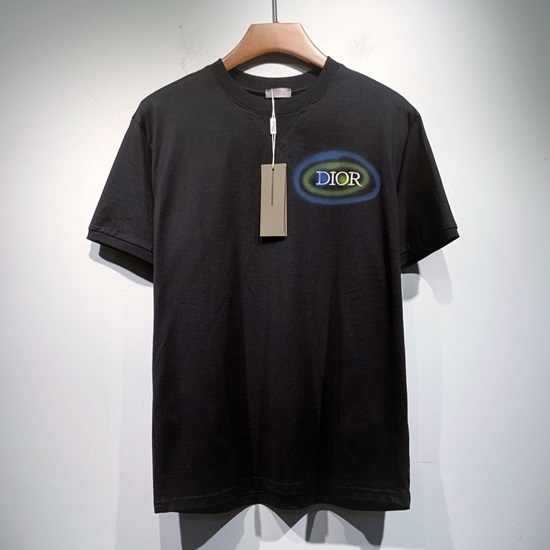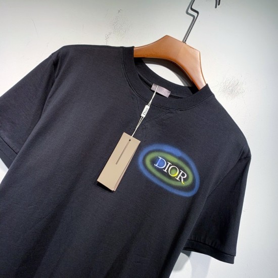 -ディオールユニセックスカジュアルクルーネック半袖Tシャツo01302ブラック