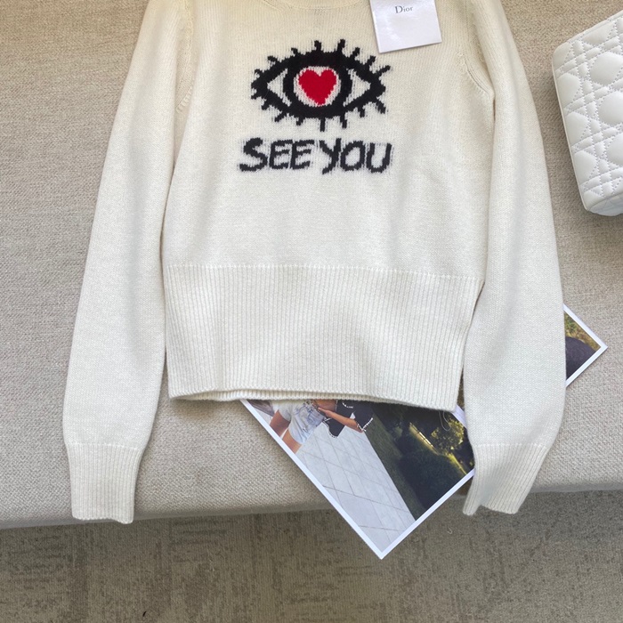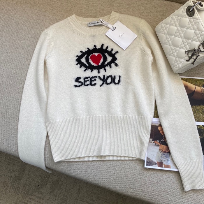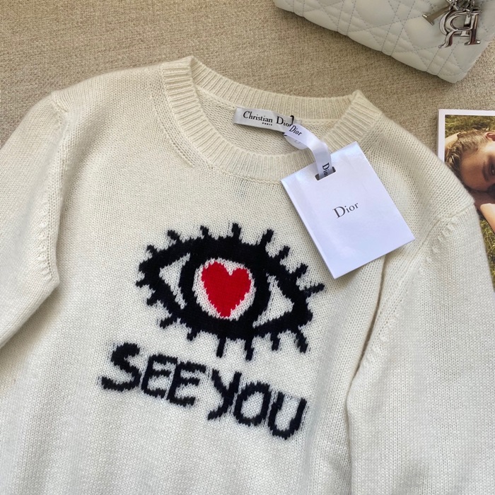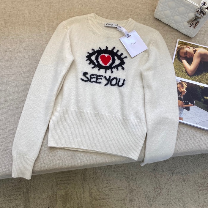 -ディオールレディースレトロクルーネックセーターo01306アイボリー