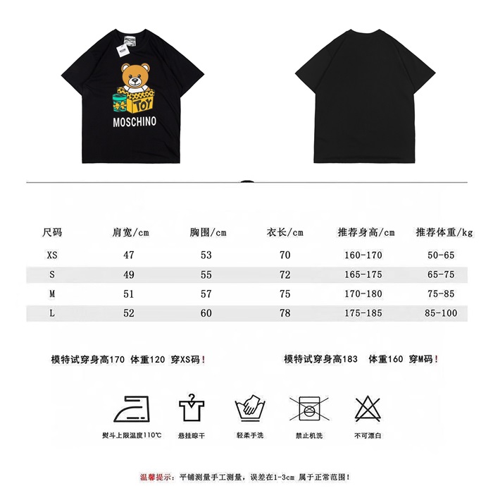 モスキーノユニセックスコットン半袖Tシャツs0174ブラック