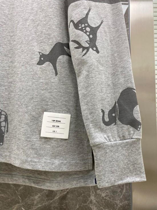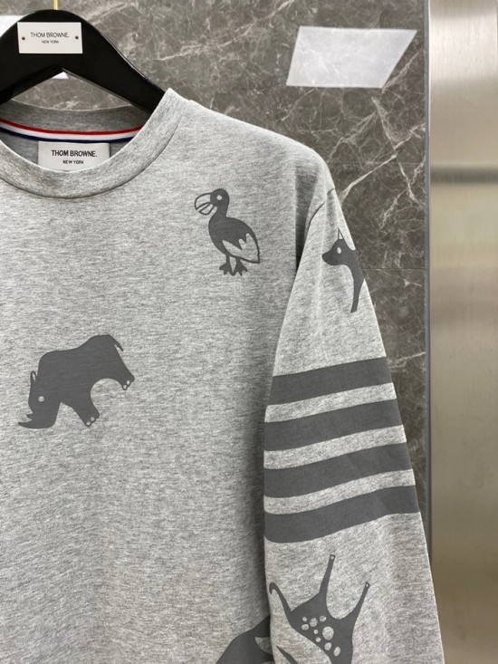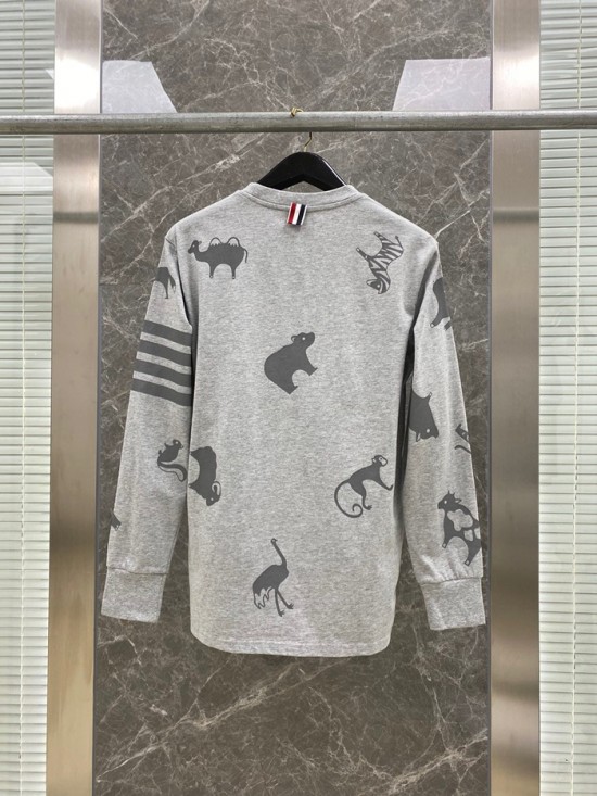-トムブラウンメンズストラップクルーネック長袖Tシャツm01319グレー