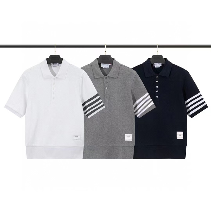 トムブラウンメンズカジュアル半袖Tシャツm01329グレー/ネイビー/ホワイト