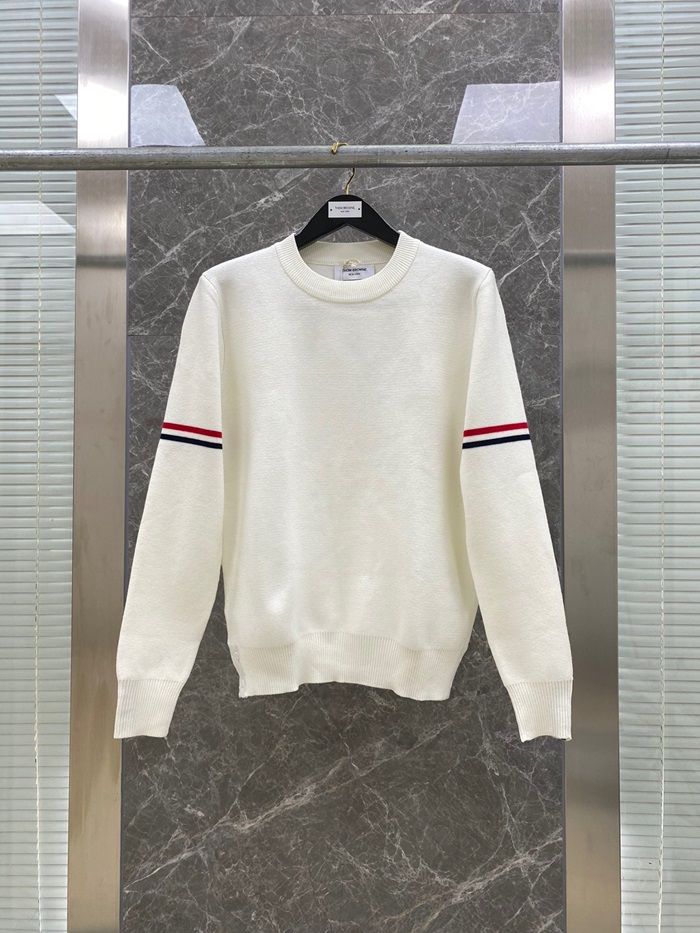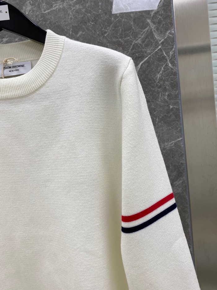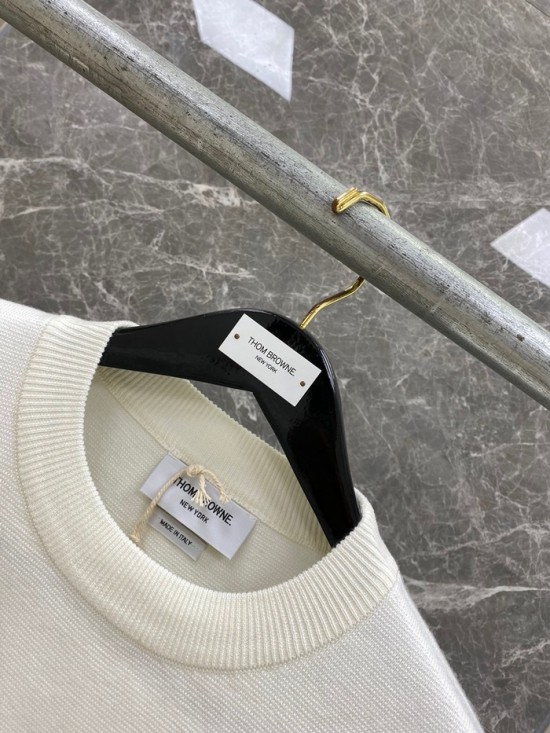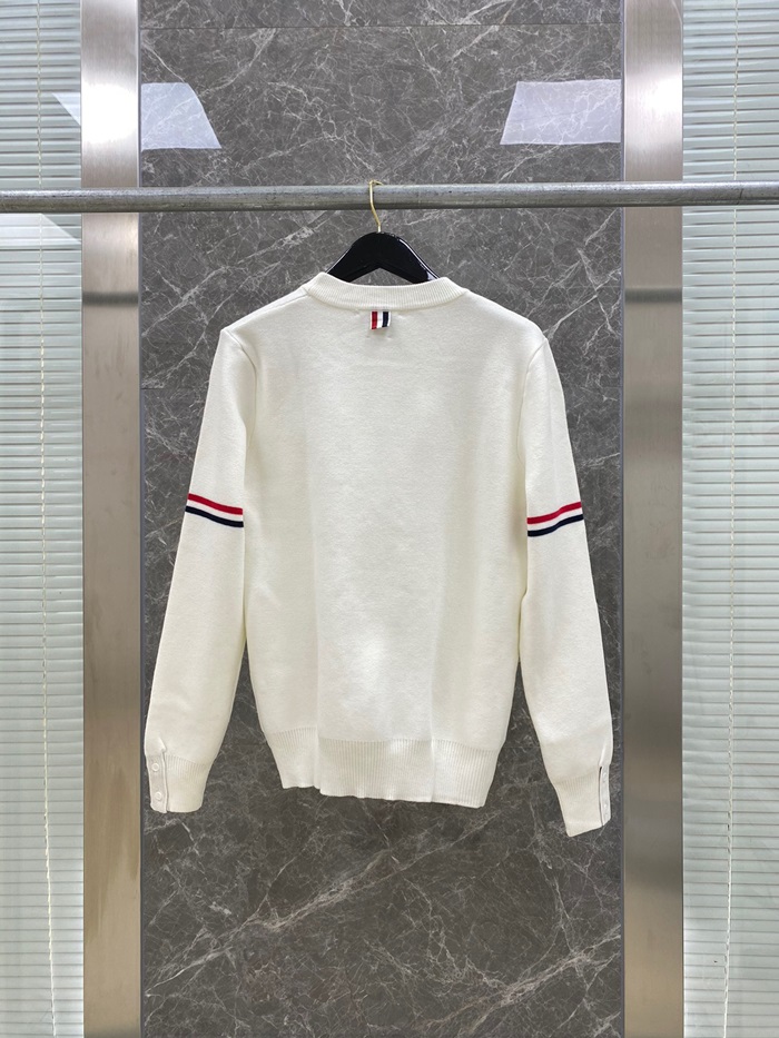 -トムブラウンユニセックスストラップクルーネックウールセーターm01333ホワイト