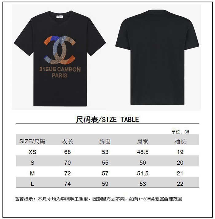 'シャネルユニセックス''コットン半袖Tシャツl0724ブラック
